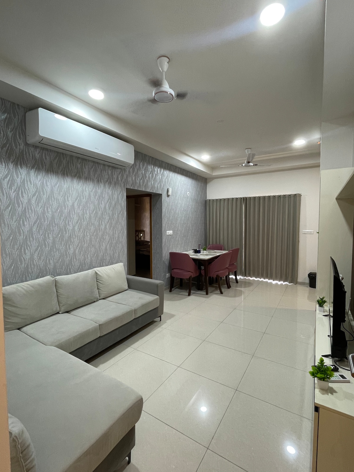Elegantan 2 BHK luksuzni stan | Bazen • Teretana • Najbolja lokacija | Dobro došli u svoj moderni smještaj! Ovaj elegantni luksuzni stan sa 2 spavaće sobe i 2 kupatila savršen je za porodice, poslovne putnike ili male grupe koje traže udobnost i praktičnost. Nalazi se u mirnom i opuštajućem okruženju. Prostor Prostrana 2 BHK sa savremenim dekorom Udoban dnevni boravak sa pametnim TV-om i brzom Wi-Fi mrežom Privatni balkon s mirnim pogledom Sadržaji Pristup bazenu Teretana i klub Klima uređaj u svim sobama