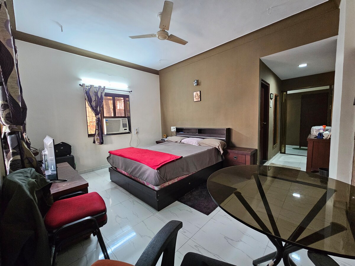 Dobrodošli u nasleđe grada - Ahmedabad ! NOVI prostrani porodični stan u Ambawadi, Nehrunagar Area. Ceo stan će biti tvoj. Detalji: Veličina stana: 380 kvadratnih metara, 35 m2 - Glavna spavaća soba sa bračnim krevetom, ormarom, kupatilom, tuš kabinom sa toplom vodom, klima uređajem - Još jedan kauč u dnevnoj sobi sa čajnom kuhinjom. -IKEA namještaj, BESPLATAN Wi-Fi, klima-uređaj, flaširana voda za piće. Lift Žao nam je: zabranjeno je pušenje, nema kućnih ljubimaca (dodatna usluga pranja veša u istoj zgradi)