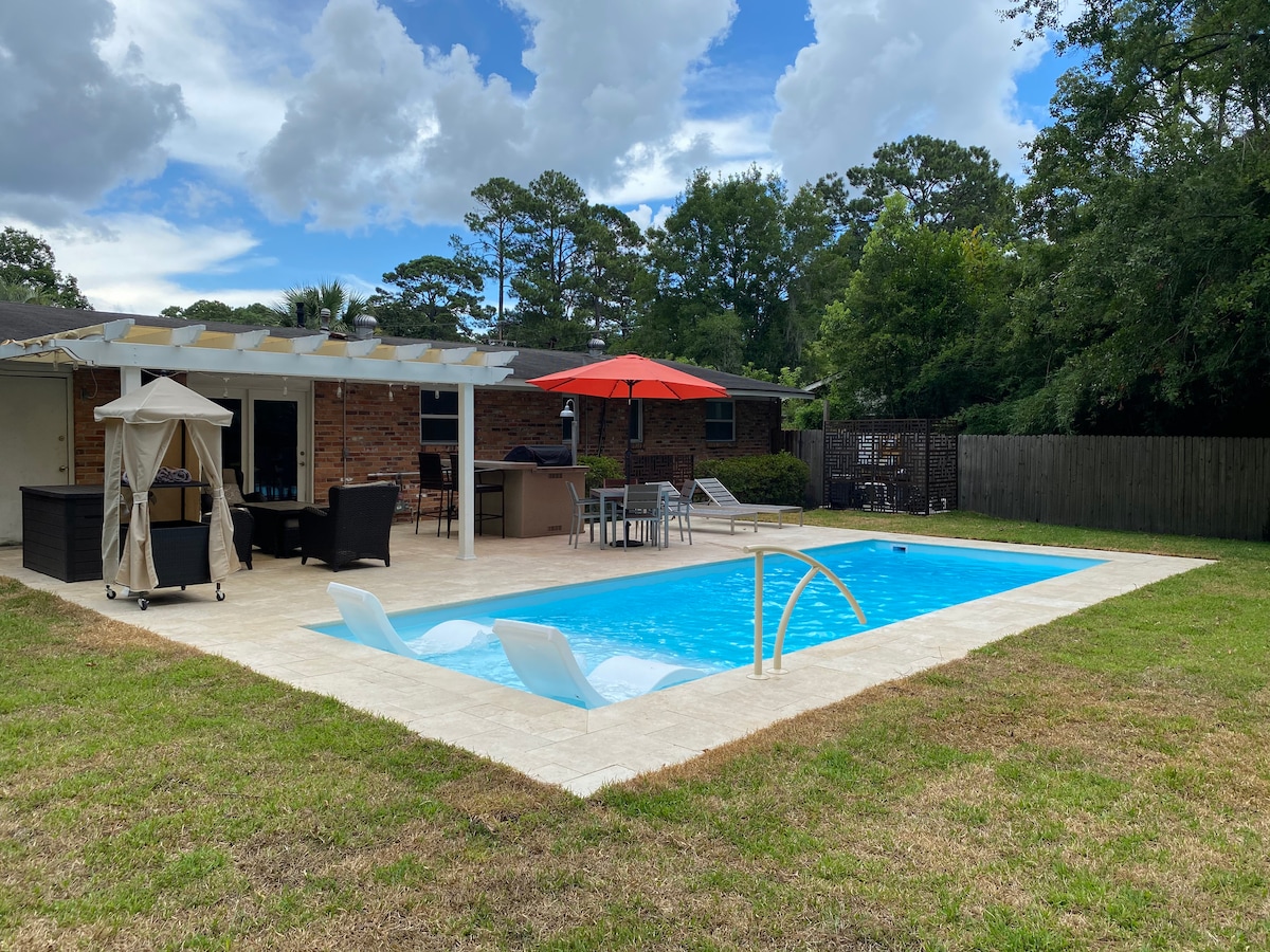 *Više fotografija dnevno! Zabavite se sa cijelom porodicom u svom elegantnom smještaju na jednom nivou sa bazenom! Ovo je savršeno čvorište za vaš boravak u Savani - dođite do istorijskog centra grada i ostrva Tajbi za oko 10 minuta! Posebnosti: - Nezagrevani bazen - Pločica za bebe - Smještaj na jednom nivou bez stepenica -4 spavaće sobe -2 kupatila -14"dušeci od memorijske pjene - Na centralnoj lokaciji -Studio McGee dekor - Ping pong, arkade, pikado - Parkiranje za četiri automobila Ostanite ovdje - nećete htjeti da odete!