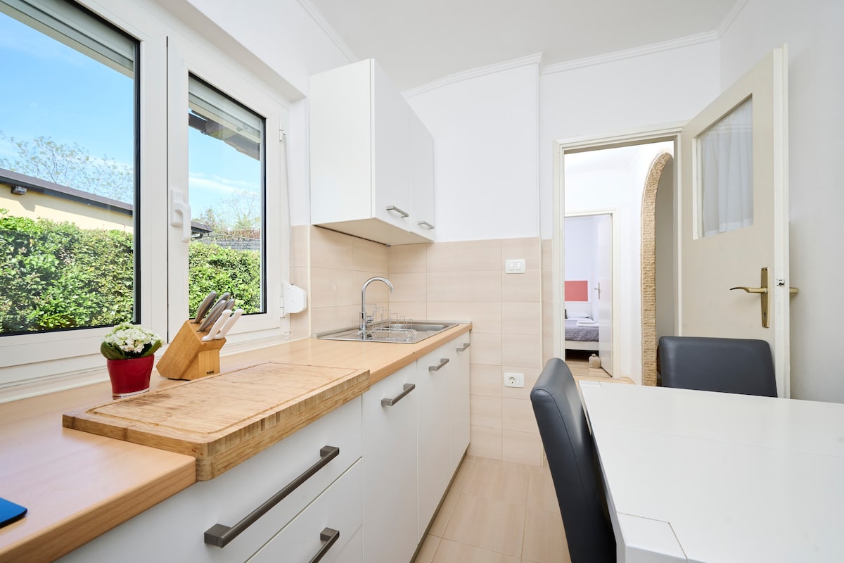 Uživajte u odmoru u ovom modernom i lepom stanu sa 3 terase sa pogledom na more na samo nekoliko minuta od peščane plaže smeštene u starom ribarskom selu Zambratija, poznatom po poznatim morskim restoranima. Privatni ulaz i prostor samo za vas omogućavaju vam da se opustite u mirnom prirodnom okruženju, ali i na nekoliko minuta vožnje od Umaga, grada poznatog po kulturnim, rekreativnim i turističkim atrakcijama. Pročitajte dobru knjigu, uživajte u čaši vina ili uživajte u pogledu na more u bilo koje doba dana.