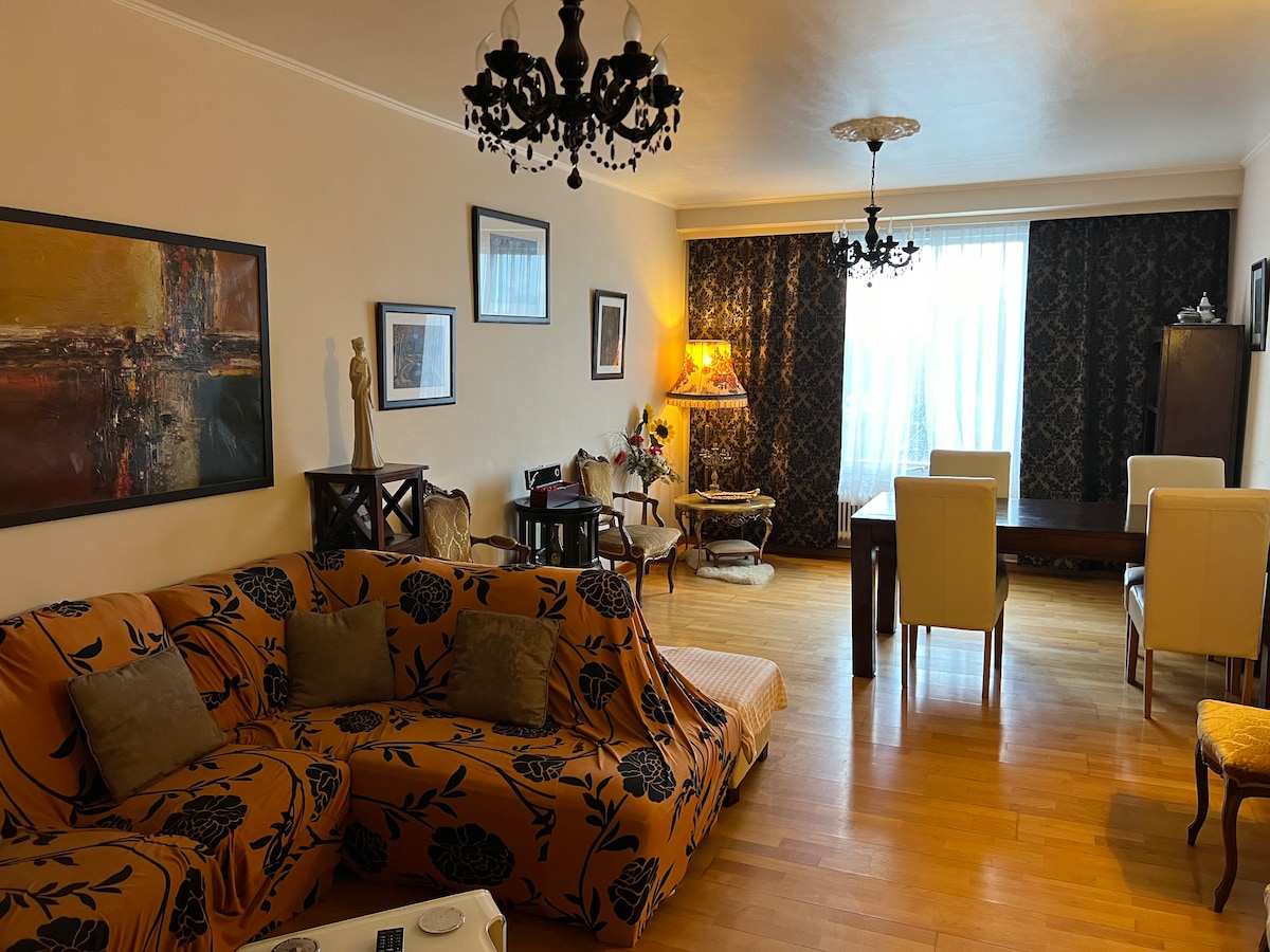 Topao i elegantan stan od 80 m² u blizini gradskog srca, smješten u mirnoj zgradi sa liftom. Prvo mjesto: 15 minuta do aerodroma Bru, nekoliko koraka od voza, šetnja do Grand Plejsa. Unutra: Dvije mirne, udobne spavaće sobe i krevet za jednu osobu, odvojeni toalet, kupatilo s kadom, mašina za veš, mašina za sušenje veša, oprema za fitnes, TV ravnog ekrana, projektor, Hi-Fi, društvene igre, kamin. Bonus: Privatna podzemna garaža udaljena samo 100 metara, u istoj ulici.