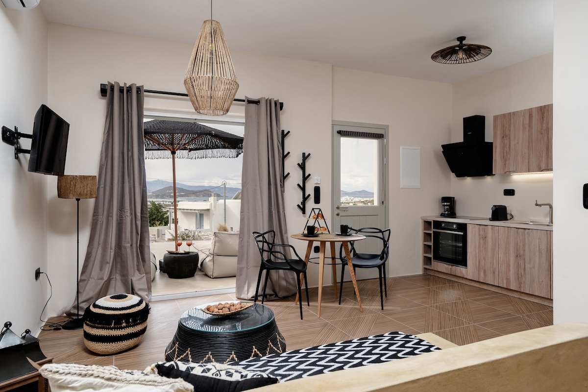 Smješteni u gradu Naksos sa zadivljujućim pogledom na Egejsko more, gostima nudimo priliku za ekskluzivno opuštanje. Nedaleko od čuvene PORTARA i venecijanskog dvorca na ostrvu. Naša filozofija je da ponudimo prvoklasno gostoprimstvo u kombinaciji sa privatnošću bez premca. Mnogo više od doma, naš deluxe apartman nudi vrhunsku udobnost u kombinaciji sa elegancijom i jedinstvenim grčkim gostoprimstvom. Topli minimalistički redovi stvaraju opuštajuću atmosferu.