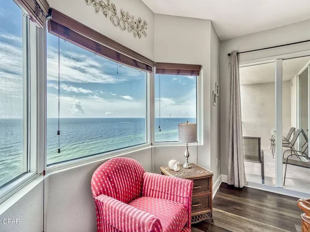 Ovaj kondominijum na 7. spratu u odmaralištu Tidewater Beach Resort nudi prekrasan panoramski pogled na beskrajnu obalu smaragdne obale Meksičkog zaliva. Sa privatnog balkona ili udobnosti kauča u dnevnom boravku ili trpezarijskog stola, uživajte u zadivljujućim zalascima sunca iznad okeana i blistavim gradskim svjetlima noću. Odmaralište se može pohvaliti nevjerovatnim sadržajima, uključujući dva bazena u stilu lagune, grijani unutrašnji bazen, hidromasažne kade, najsavremeniji fitnes centar sa rimskim spa centrom, bioskop i pristup privatnoj plaži.