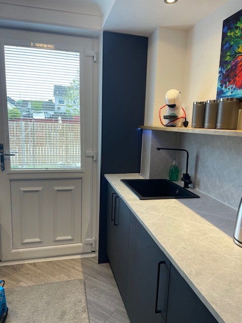 Udoban i prostran prvi sprat, četverosoban stan u srcu zanatskog grada Vest Kilbride. Plaža je udaljena petnaest minuta hoda sa neverovatnim pogledom na ostrvo Arran i blizu mesta za venčanje hotela Seamill Hydro i Waterside. Teren za golf u Vest Kilbrideu je udaljen manje od pet minuta vožnje. Blizu smo Ardrossan i Largs marin i trajekata do ostrva. Aerodrom u Glazgovu 35 minuta i aerodrom Prestvik 25 minuta.