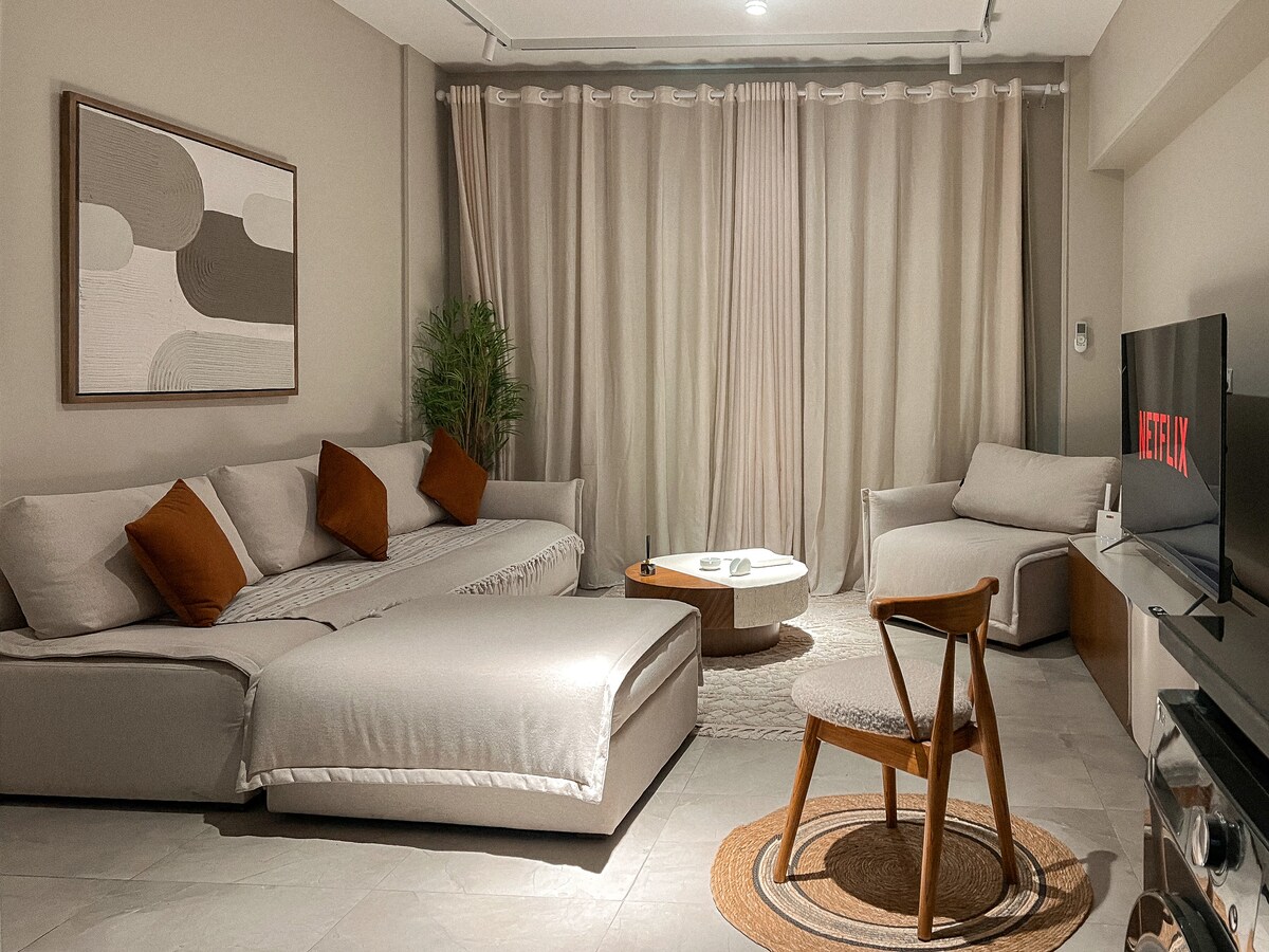 Dobro došli u svoj savršeni dom daleko od kuće u srcu Madinatija! Ovaj novouređeni, prostrani stan sa 2 spavaće sobe i 2 kupatila nudi spoj moderne i udobne udobnosti. Smješten u potpuno novoj zgradi, stan, potpuno opremljena kuhinja i spokojne spavaće sobe savršene za opuštanje nakon cjelodnevnog izlaska. Smješten samo 10 minuta od živahnog tržnog centra Open Air, uživaćete u jednostavnom pristupu kupovini, restoranima i zabavi.