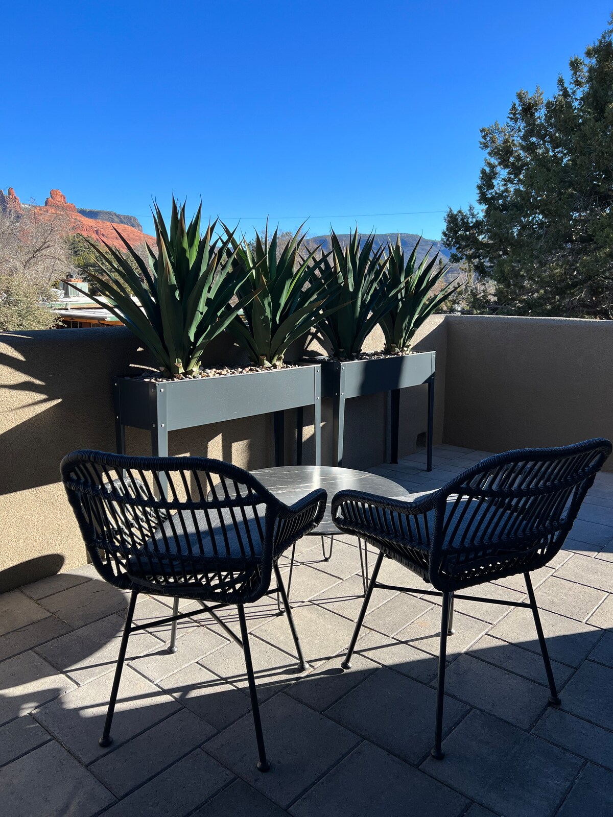 Dobro došli u Luna Terrace Uptown, mirno, luksuzno utočište nedaleko od vreve legendarnog centra Sedone. Pešačite, vozite bicikl ili se vozite na kratkoj udaljenosti do više od četiri stotine kilometara netaknutih staza. Uključena je propusnica za parkiranje u Red Rocku. Opustite se na privatnoj terasi s pogledom na planine. Unutra uživajte u plišanom bračnom krevetu sa jorganima u evro stilu, čajnom kuhinjom i TV-om ravnog ekrana, uključujući Hulu Live.