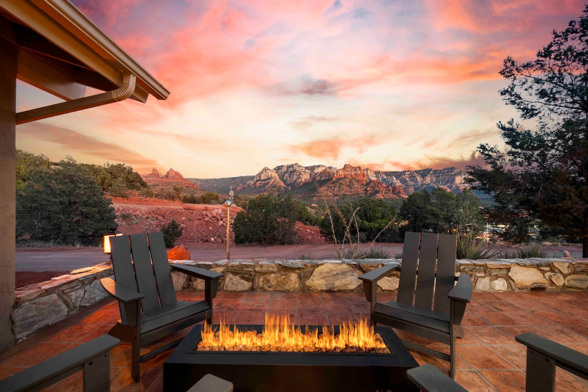 Dobro došli u svoje utočište u Sedoni, na korak od Uptowna, ali mirno ušuškano! Savršeno za porodice i grupe koje traže prostor, udobnost i pogled na crvene stijene: - Za 16ili više osoba | 5 spavaćih soba | 12 kreveta | 5 kupatila - Spa centar za plivanje i hidromasažna kada (dostupno je grijanje) - Ognjište, unutrašnje dvorište i restorani na otvorenom - Potpuno opremljena kuhinja i roštilj - Prikladno za porodice sa igraonicom, krevecem i igrama - Bazen i privatna sauna za opuštanje – BEZ NAKNADA ZA AIRBNB