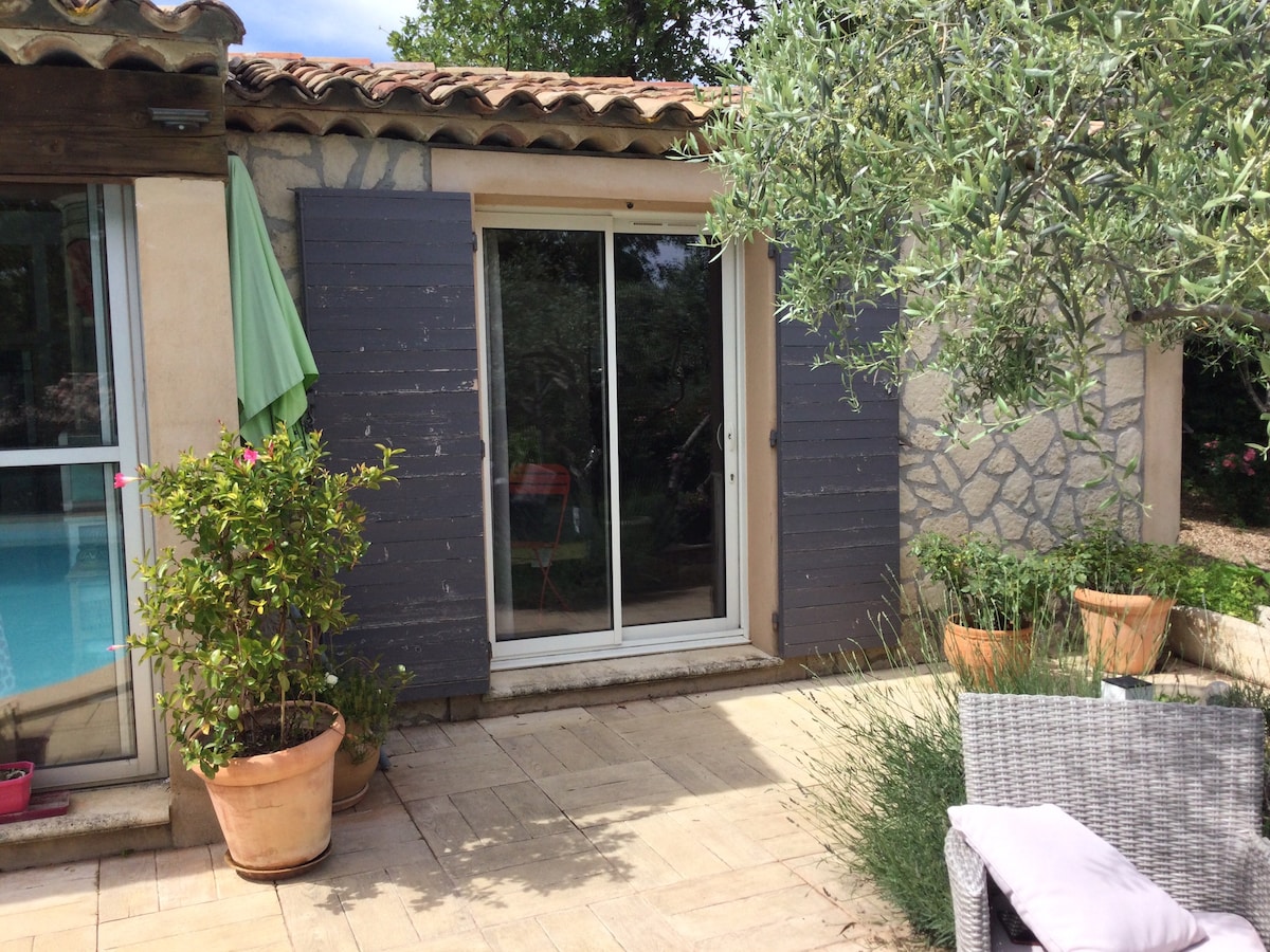Poželećemo vam dobrodošlicu u našu lijepu provansalsku vilu od 105 m2 na ograđenoj i šumovitoj parceli od 1500 m2 sa grijanim bazenom 7m× 3,50m koji se može koristiti od sredine aprila ako vremenske prilike to dozvole. Sastoji se od 2 spavaće sobe i 2 kupatila. Potpuno opremljena kuhinja s dnevnim boravkom. Dnevni boravak sa TV-om (CANAL + i Netflix) je klimatizovan, a Wi-Fi je uključen. Pravi mali kutak raja u mirnom području. U srcu provansalskog sela, odlično za planinarenje! Vila samo za vas