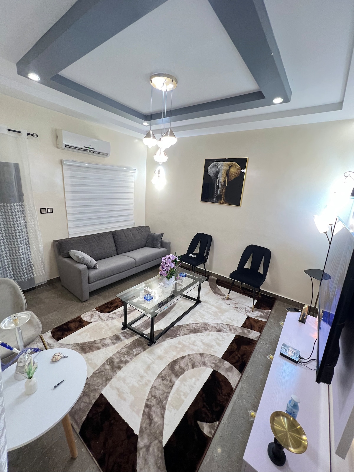 Bienvenue dans cet appartement au charme africain. 🏡 Confort et Commodités - 🛋️Salon spacieux : canapé, TV avec chaînes internationales, ventilateur, table à manger. - 🛏️ Chambre climatisée avec grand lit et salle de bain privative. - 🍽️ Cuisine équipée pour préparer vos repas maison. - ⚡Compteur d'électricité personnel. - 🌐 Wi-Fi 🏠 Accès et Séjour L’appartement est à votre disposition. Nous restons disponibles à distance et vous accueillons à votre arrivée.