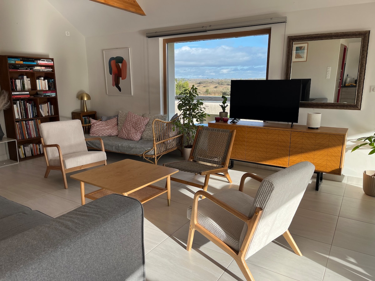 Dobro došli u naš prelijepi zen i topli dupleks. Živimo u Seneu, u mirnoj rezidenciji na selu 3 minuta od luke Vanes, 500 metara od mora i zaliva Morbihan. Uživaćete u bašti sa privatnom terasom i roštiljem na drveni ugalj. Možete uživati u našem grijanom bazenu tokom sunčanih dana koje rado dijelimo sa vama. Iz našeg doma imate pristup obalnim stazama za prelijepe šetnje Dupleks sa parkingom je potpuno nezavisan i opremljen.
