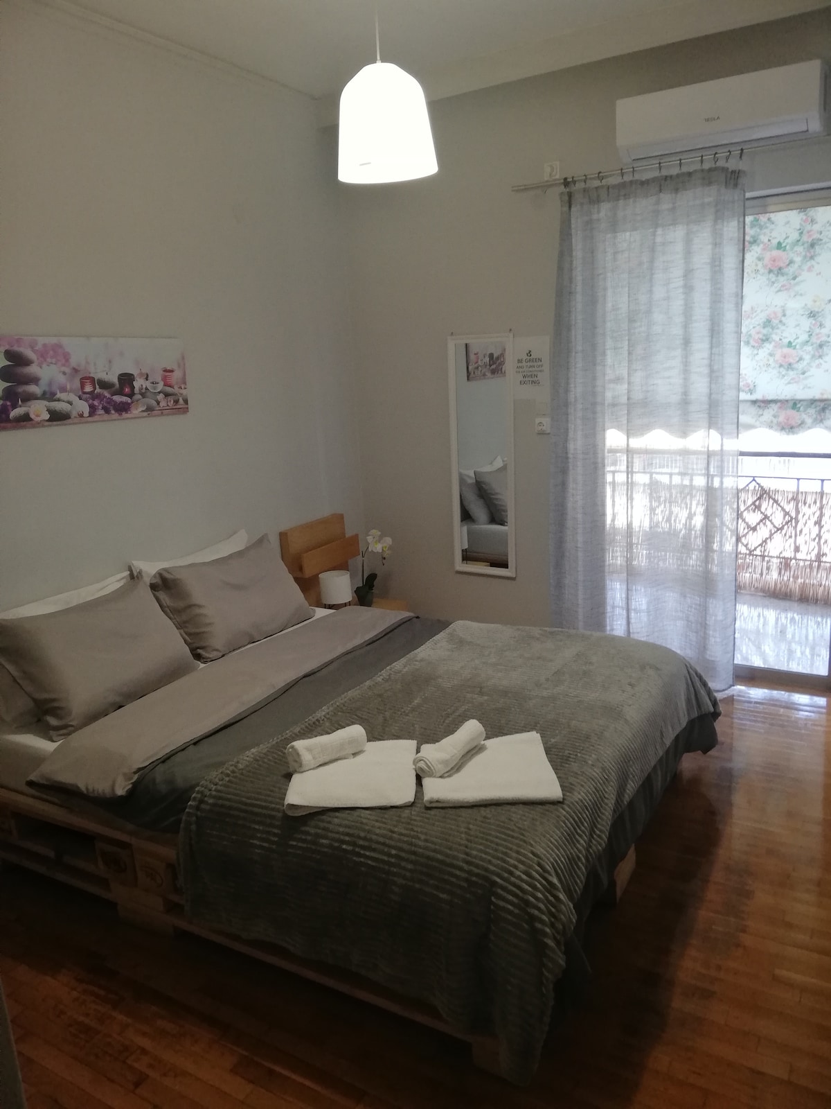 Prekrasan stan koji se nalazi u prizemlju, u mirnoj i zelenoj ulici, samo 5 minuta hoda od metroa. Biće vam lako da dođete do bilo kog dijela grada. Novo renoviranje i odličan namještaj, savršen dušek koji garantuje odličan odmor i spavanje... Imamo sve za udoban boravak za dva gosta! Imajte na umu da nemamo kanal za TV. TV je povezan sa Wi-Fi mrežom, a bilo koji TV kanal možete da pronađete putem YouTube-a ili pregledača.