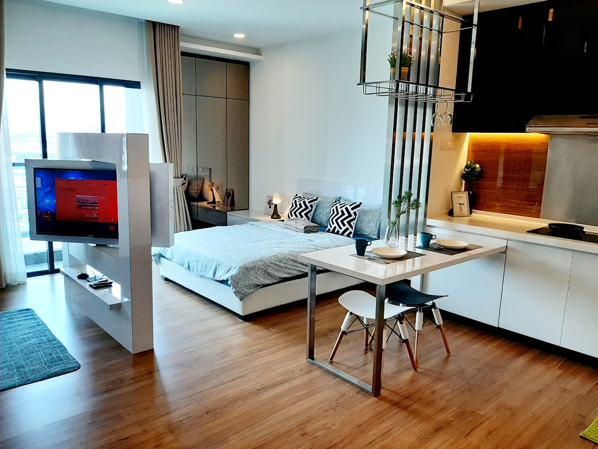 Location : Soho Cube @ One South , Taman serdang perdana Outside the condo is MRT station , a few minutes' walk away There are 450 sqft - Studio unit , can accommodate up to 5 people . All fully equipped ; Smart Tv with Netflix & youtube , wifi , 2 in 1 washing machine Downstairs have restaurants, convenience stores and etc. easy to call Grab car or take MRT train go wherever you want we will send you self check-in guideline when you make booking . you can check in easily