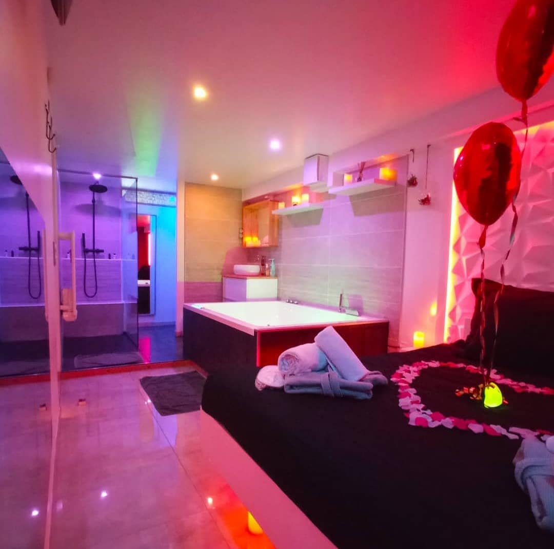 Dođite i provedite romantični vikend u našoj glamuroznoj i romantičnoj seoskoj kućici ispunjenoj šarmom izloženog kamena, diskretno pobjegnite za romantičnu noć i senzualnost će učiniti da vrijeme nestane Stan je opremljen privatnim đakuzijem i nestašnom sobom za opuštanje i vikend da se rimujete sa još više blagostanja, uživajte u malom zen eksterijeru koji prati apartman.