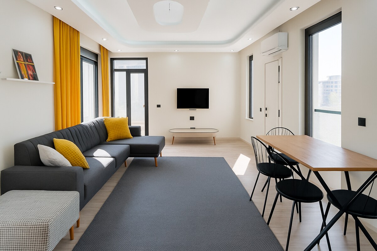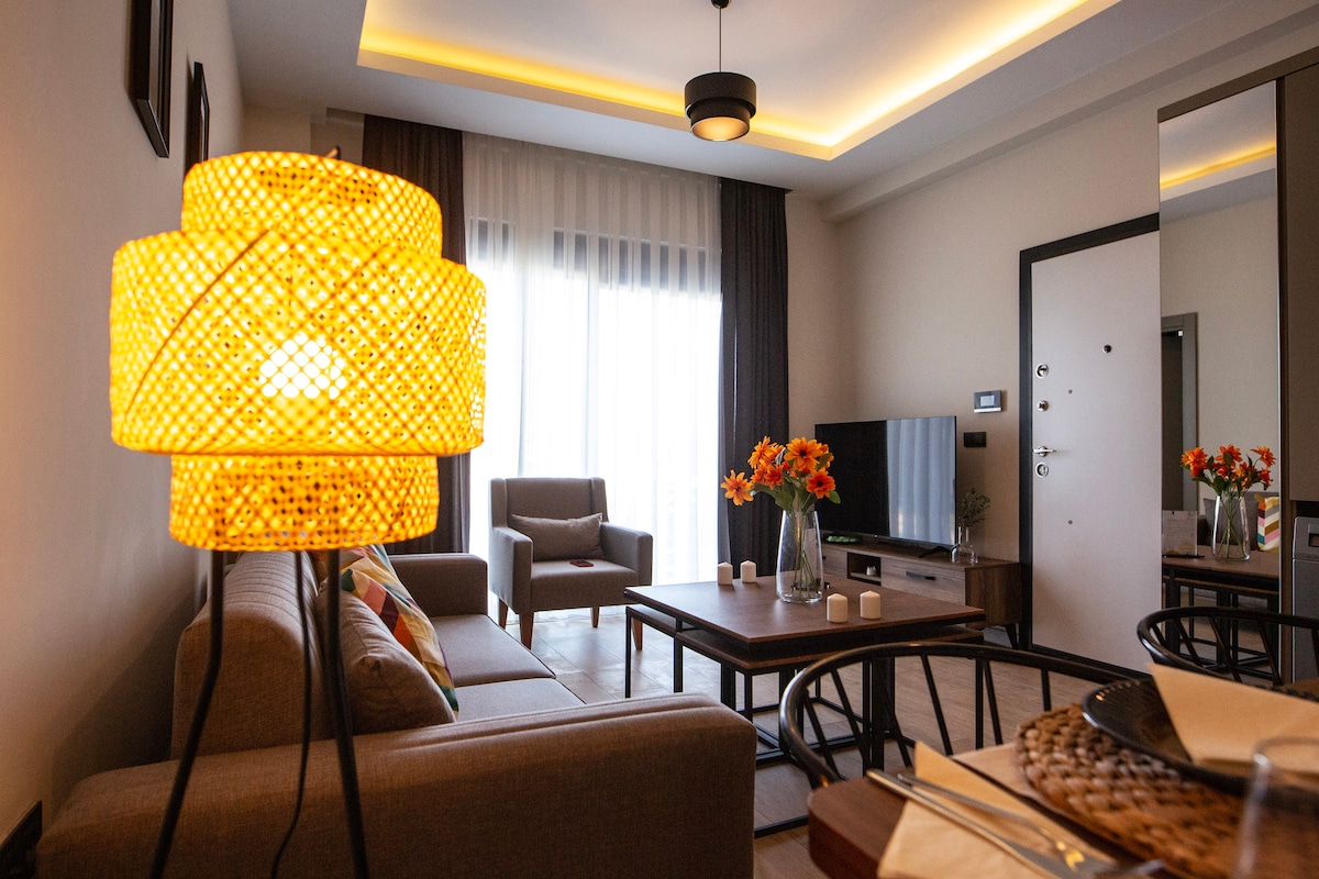Pozivamo vas da iskusite udoban smeštaj u našoj novoj modernoj zgradi u Lari, jednom od najlepših regiona Antalije! Stan ima 1 sobu, 1 dnevni boravak, balkon i otvorenu kuhinju. Svi predmeti su novi i pažljivo odabrani Svaki detalj koji vam je potreban u kući je razmotren Idealna temperatura u svim godišnjim dobima uz klima-uređaj i podno grijanje Udoban prostor za sjedenje i moderan namještaj. Potpuno opremljena otvorena kuhinja Balkon sa pogledom na rezervat prirode Yamansaz Čeka vas miran smještaj u blizini centra grada i prirode.