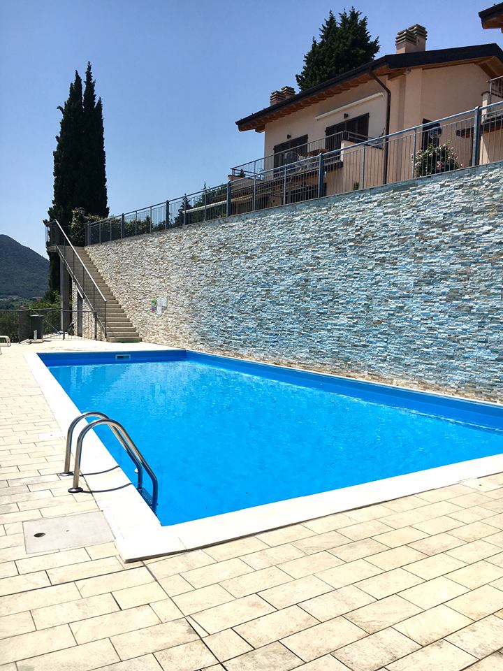 Svetli stan sa velikom terasom i prelepim pogledom na jezero, koji se sastoji od: - kuhinja/dnevni boravak opremljen sudoperom, električnom rernom, frižiderom i zamrzivačem, mikrotalasnom pećnicom, mikrotalasnom pećnicom, čajnikom, priborom za jelo, posuđem, TV-SAT-om, Wi-Fi mrežom i kaučem na razvlačenje. Na terasi se nalazi sto, stolice i ležaljke - glavna spavaća soba sa glavnom veličinom, veliki ormar, noćni ormarići i prozor sa pogledom na Monte Baldo. - kupatilo sa umivaonikom , WC-om, bideom, tušem, fenom za kosu, pogledom na prozor Monte Baldo.