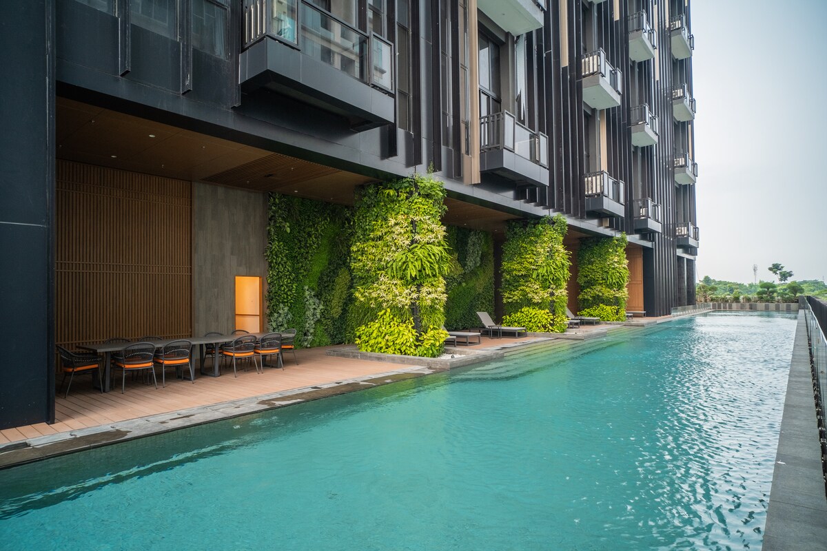 Profesionalno upravljanje od strane Kozystay-a Pobjegnite u pažljivo dizajnirano utočište s 2 spavaće sobe u Tangerangu — spajajući mir inspirisan Japanom s modernim luksuzom, upotpunjen privatnim liftom, rasporedom u potkrovlju, bazenom, teretanom i vrhunskom gradskom lokacijom. DOSTUPNO GOSTIMA: + Digitalna prijava + Profesionalno čišćenje (dezinfekcija) + Sadržaji hotelskog razreda i čista posteljina + Besplatan brzi Wi-Fi i kablovska TV + Besplatan pristup Netflix-u