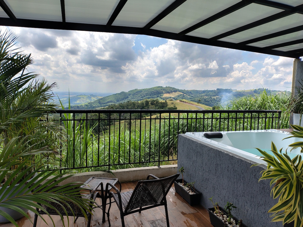U medijima planine Sera Negra - SP, Dentro do Sítio Monte Belo. Za opuštanje , sa luksuzom i sofisticiranošću na samo 5 minuta od centra grada. Računajte sa: Pogled na planine 360 Ognjište, Klimatizovani bazen, Grijana kada s hidromasažnom kadom, Prostor za roštilj, Projektor od 84inča Movie Sound, Tuš kabina p/ 2 s pogledom Lokalni kafići za besplatnu degustaciju unutar planinske kuće. Sve je PRIVATNO Impresionirajte svoju ljubav! Mi smo Pet Friend-Ly. Ne prihvatamo dijete
