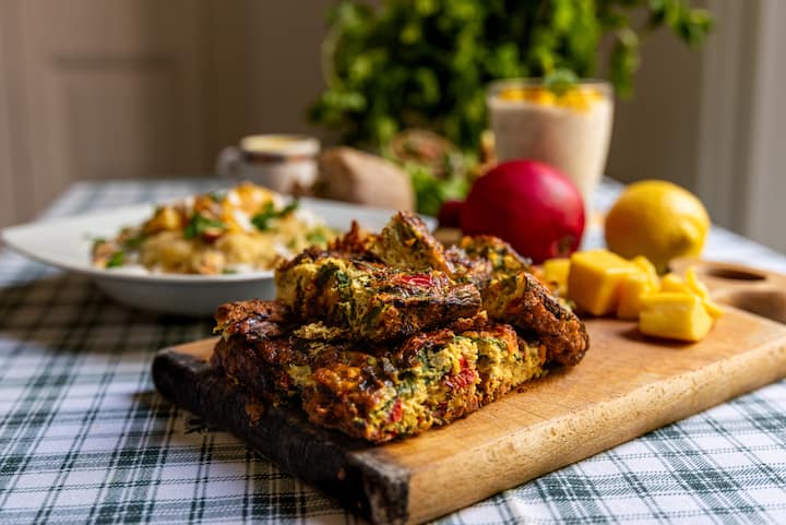Uključuje jogurt parfait, vegetarijansku fritatu, ovsene kuglice i svježi sok ili smuti.
