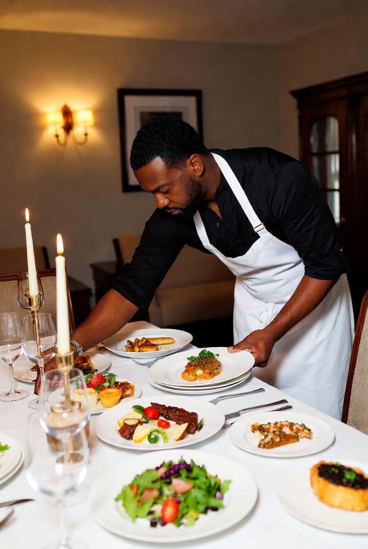 Naše stručne usluge privatnog kuvara donose kulinarsko savršenstvo u vaš dom. Kupujemo najsvježije lokalne sastojke i pripremamo izuzetan obrok od tri jela u vašoj kuhinji. Svaka večera sa privatnim kuvarom se poslužuje na tanjiru. Večera uključuje salatu i glavno jelo s mesom, povrćem i skrobom po vašem izboru. Uz predivnu kombinaciju vina/piva po vašem izboru i desert koji je odabrao kuvar. Obični tanjiri i pribor za jelo su uključeni, a veganske/vegetarijanske opcije su dostupne na zahtjev.