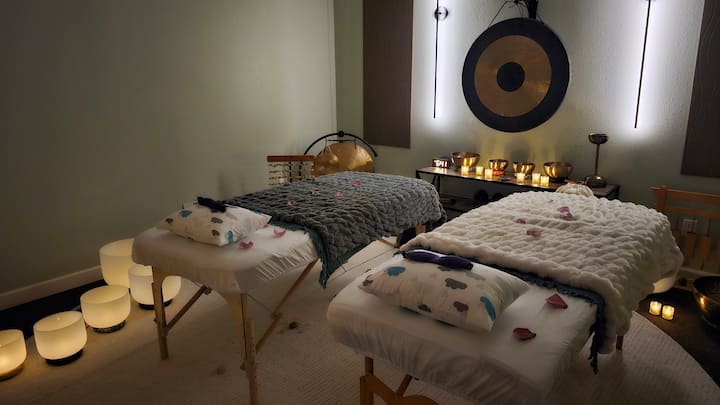 Pozovite svog partnera, prijatelja ili voljenu osobu na privatnu seansu iscjeljivanja zvukom. Sunny spaja intuitivno isceljenje kroz vežbe disanja, uputstva za opuštanje, namenski zvuk, kamenje, balansiranje energije i aromaterapiju kako bi vam omogućio da dubinski obnovite svoj mozak, nervni sistem, telo i emocionalno blagostanje.