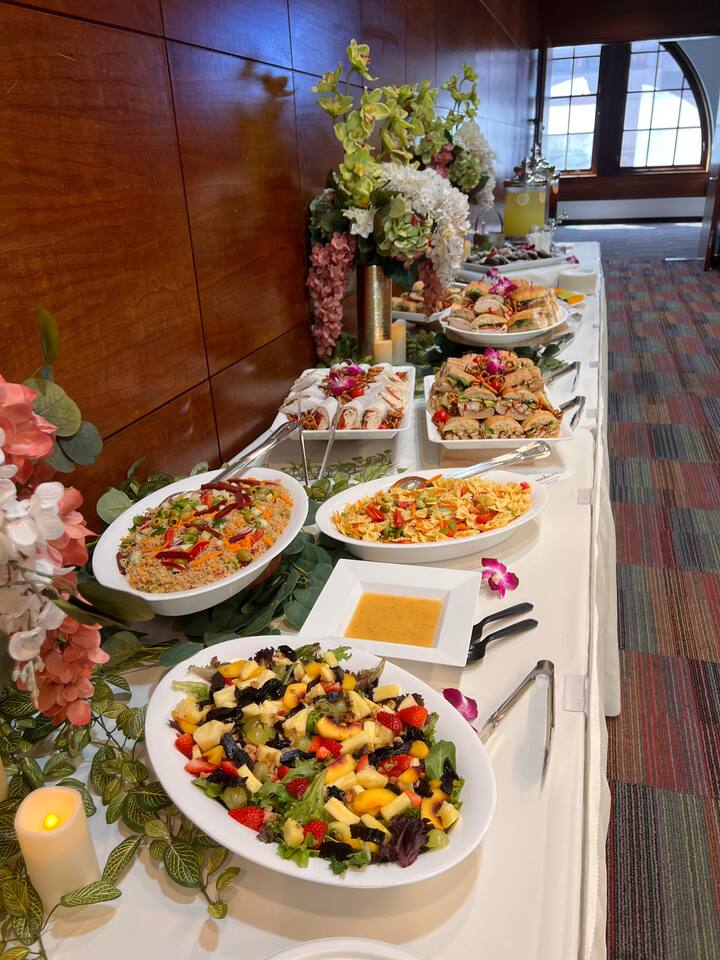 Na meniju se nalaze ukusni specijaliteti od sendviča, rolnica ili paninija koji se služe sa baštenskom salatom ili Cezar salatom, salatom od testenine i poslužavnikom sa desertima.