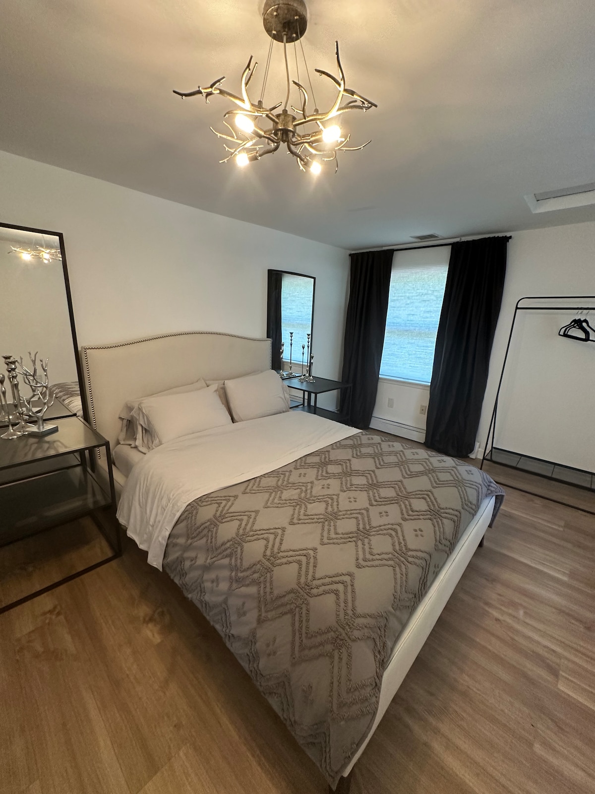 Potpuno novi privatni stan sa 1 PODRUMSKOM spavaćom sobom potpuno opremljen. Samo postavite potpuno novi udoban bračni krevet. Kuhinja, kupatilo, dnevna soba. Spavaća soba ima ormar. Apartman se nalazi u PODRUMU kuće od 2500 stopa. Stan ima najmanje 800 kvadratnih stopa i ima privatni ulaz. Ima Keurig (za koji nabavljam kafu , šećer i pavlaku) , šporet, veliki frižider, mikrotalasnu rernu, toster, fen za kosu i peglu. Dovoljno peškira, šampona, regeneratora i sapuna. KUĆNI LJUBIMCI NIJESU DOZVOLJENI