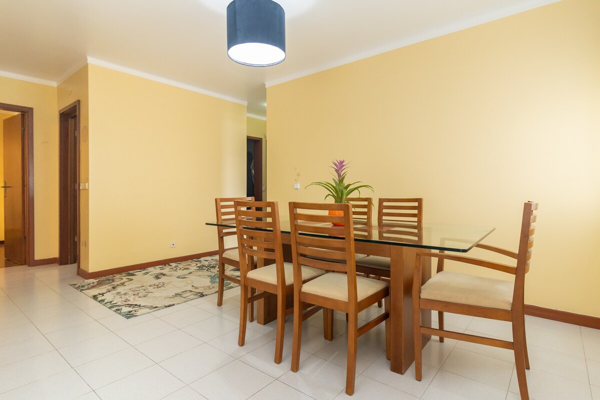 Prostran, moderan stan sa pogledom na okean smješten u srcu Setubala sa: • 3 prostrane spavaće sobe (za 8 osoba) • 2 kupatila • Potpuno namješten balkon s pogledom na okean, s pogledom na odmaralište Troia • Potpuno opremljena kuhinja • Velika sjajna soba (2 kauča, TV s velikim ekranom, sto za večeru) • Wi-Fi i TV sa satelitskom televizijom • Pješačka udaljenost do glavne avenije (Avenida Luisa Todi) • 25 minuta vožnje do Lisabona u Portugaliji (glavni grad nacije) • Parking je raspoloživ • Jednostavan pristup javnom prevozu