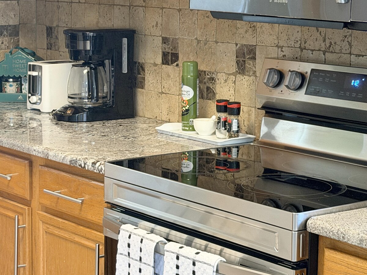 Ova kuća sa 3 spavaće sobe sa 3 spavaće sobe i 2 kupatila nalazi se u mirnom komšiluku sa uređenim pejzažima, ograđenim dvorištem, roštiljem na otvorenom i prostorom za sedenje sa ognjištem. Kuhinja uključuje frižider, aparat za kafu Keurig, toster, mikrotalasnu rernu, rernu, mašinu za sudove i prostorije za 8 ili više osoba, kao i lonce i tiganje za kuvanje. Nalazi se 4 min (vožnja) od Trga istorijskog okruga Denton, 5 min. od TWU-a i 8 min. od UNT-a. Jezero Luisvil i jezero Rej Roberts udaljeni su 15-20 minuta.
