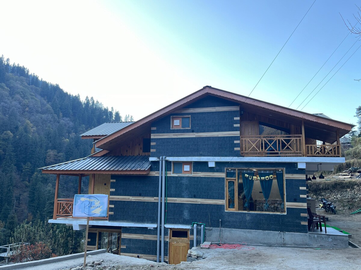 🏡 Uživajte u planinskom miru u Rubaruu - mjestu gdje ćete voljeti da budete ❤️ Opustite se u našoj prostranoj drvenoj seoskoj kućici sa plišanim bračnim krevetom i jedinstvenim balkonom u obliku slova L sa dvostrukim ulaznim tačkama. Smještena na prvom spratu naše planinske vile, vaša soba nudi pogled na izlazak sunca uz udaljene vrhove. Doživite savršen spoj rustikalnog šarma i udobnosti. Uživajte u domaćim jelima✨, noćima obasjanim zvijezdama i istinskom planinskom gostoprimstvu u našem mirnom selu u blizini Jibhija 🌄