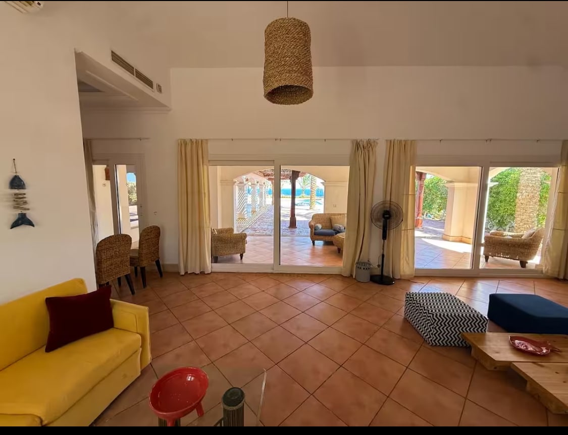 Private cliffside villa in Sharm El Sheikh with breathtaking sunset views across Ras Mohammed. Enjoy a private pool, spacious terrace, and direct beach access for swimming and snorkeling. The villa features 3 bedrooms, 2 lounges, 5 bathrooms, and a fully equipped kitchen—perfect for families or groups. Peaceful yet close to Sharm El Maya Bay, SOHO Square, and the airport.