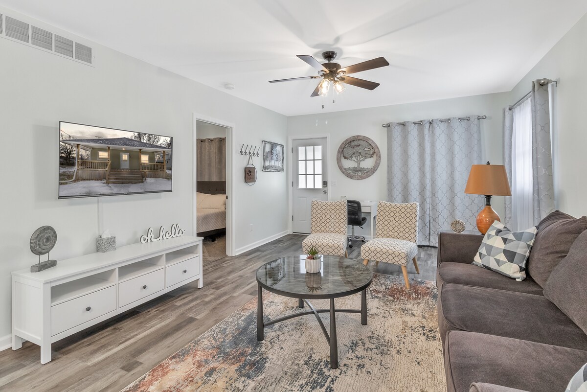 Uživajte u boravku u svom drugom domu u bloku Finli u FinliManoru. Ova jedinica se nalazi na spratu i nudi 1 spavaću sobu sa bračnim krevetom. Veliki dnevni boravak sa kaminom, pametni TV od 48inča sa lokalnim stanicama. Kuhinja je opremljena mašinom za sudove, keurigom i opštim posuđem za kuvanje/jelo. Kupatilo je opremljeno čistim peškirima, fen za kosu sa šamponom/regeneratorom za difuzor i sapunom!