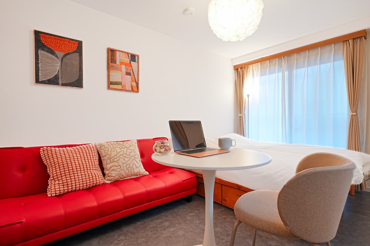 Enjoy a private stay in a licensed accommodation next to a 24-hour Lawson. Just 30 minutes by train to Tokyo Station. Free bikes, Wi-Fi, Amazon TV, a ¥1,000 breakfast voucher, and a complimentary taxi from Kawaguchi Station on check-in day. The cabin does not have a kitchen, so you will likely dine out or use ready-made meals. The room is simple, with two beds and two small desks. It is also equipped with a refrigerator and air conditioner, as well as a private toilet and shower room.