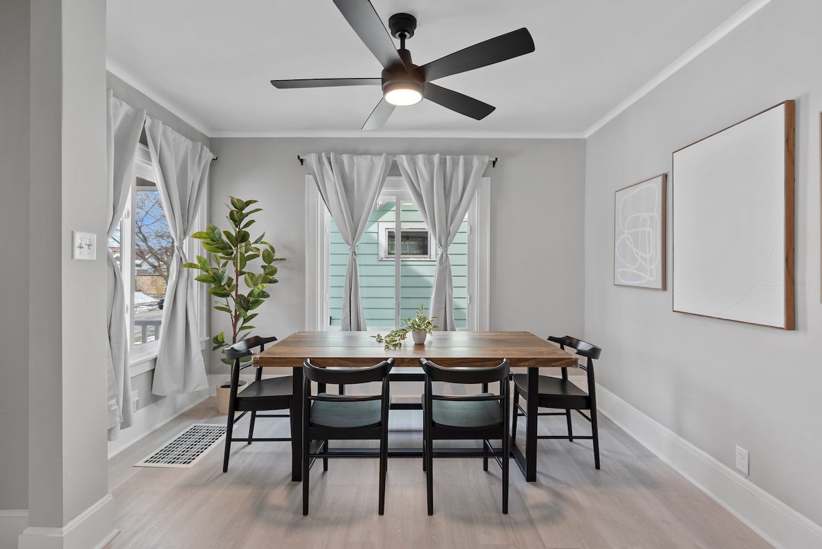 Ocjena 🔹 s 5 zvjezdica | Kvalitet Super domaćina | Brzi Wi-Fi | Besplatan parking 🔹 🏡 Doživite komadić istorije Milvokija u 100-godišnjem domu! Zakoračite u ovaj šarmantni smještaj na prvom spratu - prelijepo očuvan dom u prerijskom stilu koji spaja istorijsku eleganciju sa modernom praktičnošću. Smješten odmah preko puta UWM-a, ovaj najbolje ocijenjeni Airbnb smještaj je savršen za posjete studentima, fakultetima, porodicama i putnicima koji traže opuštajuću i pješačku četvrt.
