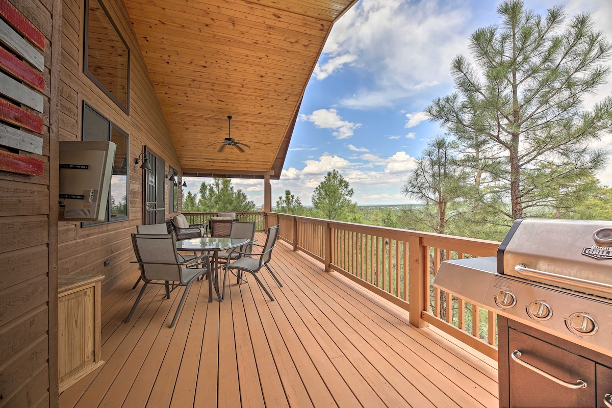 Brvnara Pinetop-Lakeside! Ova rustikalna brvnara u obliku slova A spaja tradiciju sa modernim sadržajima, okružena visokim borovima. Otprilike 1200 sf, 3 spavaće sobe, 1,5 kupatila, sa bračnim krevetom, bračnim krevetom, 2 bračna kreveta i futonom u potkrovlju. Potpuno ograđeno dvorište poboljšava bezbjednost, dok velika prednja terasa i zaštićeni trijem pružaju spokoj na otvorenom. Uživajte u udobnom boravku u zatvorenom prostoru ili provedite vrijeme na otvorenom na svježem planinskom vazduhu i toplini iz plinskog ili drvenog ognjišta.
