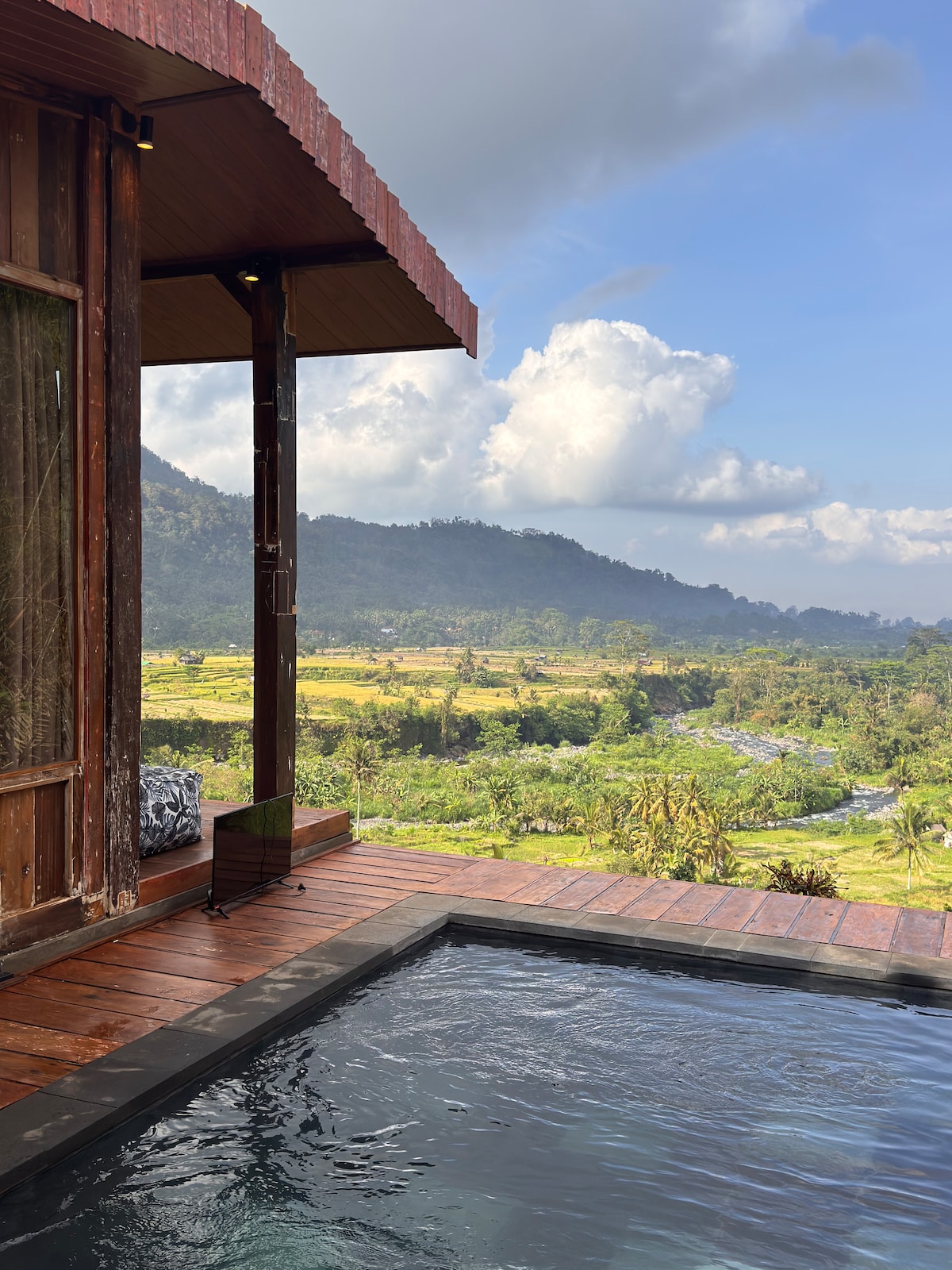 Dobro došli u KUDUS Bali, 2 kreveta / 4 osobe - balijsku vilu sa privatnim bazenom i baštom. Smješten u mirnom seoskom selu, okružen bujnim pirinčanim poljima Sidemena, sa pogledom koji oduzima dah na planinu Agung, nedaleko od vas. Uronite u mirnu atmosferu pravog Balija, daleko od gužve, i savršena za opuštanje i otkrivanje. Smješten samo sat vremena vožnje od Ubuda i Sanura, idealno je utočište za ponovno povezivanje s prirodom i lokalnom tradicijom.