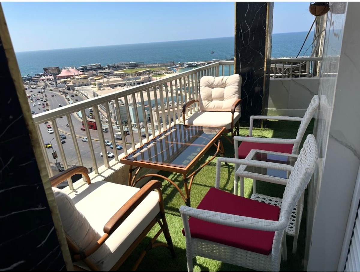 🏖️ Luksuzan apartman na plaži u Sportingu, Aleksandrija | Nezaboravan odmor! ✔️ Panoramski pogled na more: probudite se uz talase i poglede koji oduzimaju dah! ✔️ Elegantan dizajn: udobne spavaće sobe, elegantan dnevni boravak, moderna kuhinja. ✔️ Beskrajna zabava: 55" Smart TV sa Netflix i Shahid VIP + brzi Wi-Fi. ✔️ Bezbjednost: non-stop , liftovi. 📍 Glavna lokacija: Koraci od plaže 🌊 – plivajte ili šetajte u sumrak! Najbolji restorani/kafići u Aleksandriji ☕ U blizini znamenitosti i kupovine u Aleksandriji.