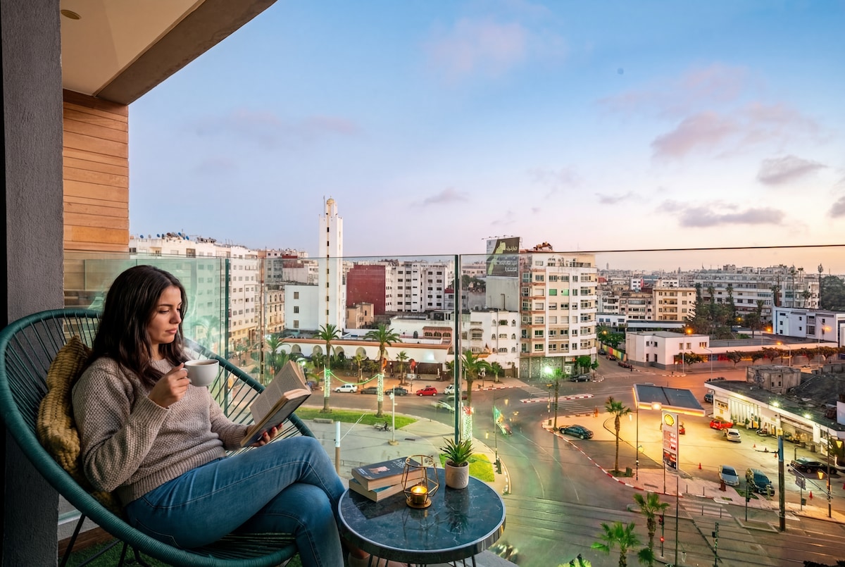 🌟 Moderni studio apartman sa balkonom i panoramskim pogledom u Kazablanci Uživajte u elegantnom i udobnom boravku u ovom modernom studiju, savršeno smještenom u srcu Kazablanke. Dizajniran za poslovne i turističke putnike, apartman nudi jednostavan pristup gradu, udobnost i privatni balkon s prekrasnim otvorenim pogledom na Kazablanku, idealan za opuštanje u zoru ili uveče 🌇. 💼 Otkrijte Kazablanku uz udobnost, svjetlost i pogled – rezervišite svoj boravak već danas!