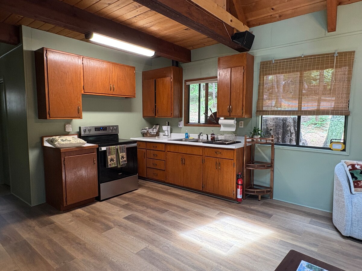 Kompas^NORT je POTPUNO NOV na pijaci!! KLIMA UREĐAJ, BRZI WI-FI I JEDNOSTAVAN PRISTUP. Ušuškan ispod visokih borova sa neprekidnim pogledom na zalaske sunca na severozapadnoj planini. Prostor inspirisan boemima savršen je za porodice i parove koji traže udoban prostor za opuštanje i opuštanje nakon cjelodnevne avanture i istraživanja. Savršena baza za istraživanje jezera Pinecrest, skijališta Dodge Ridge, državnih parkova, više jezera, rijeka i bezbroj pješačkih staza u tom području. XFINITY HIGH-SPEED WIFI