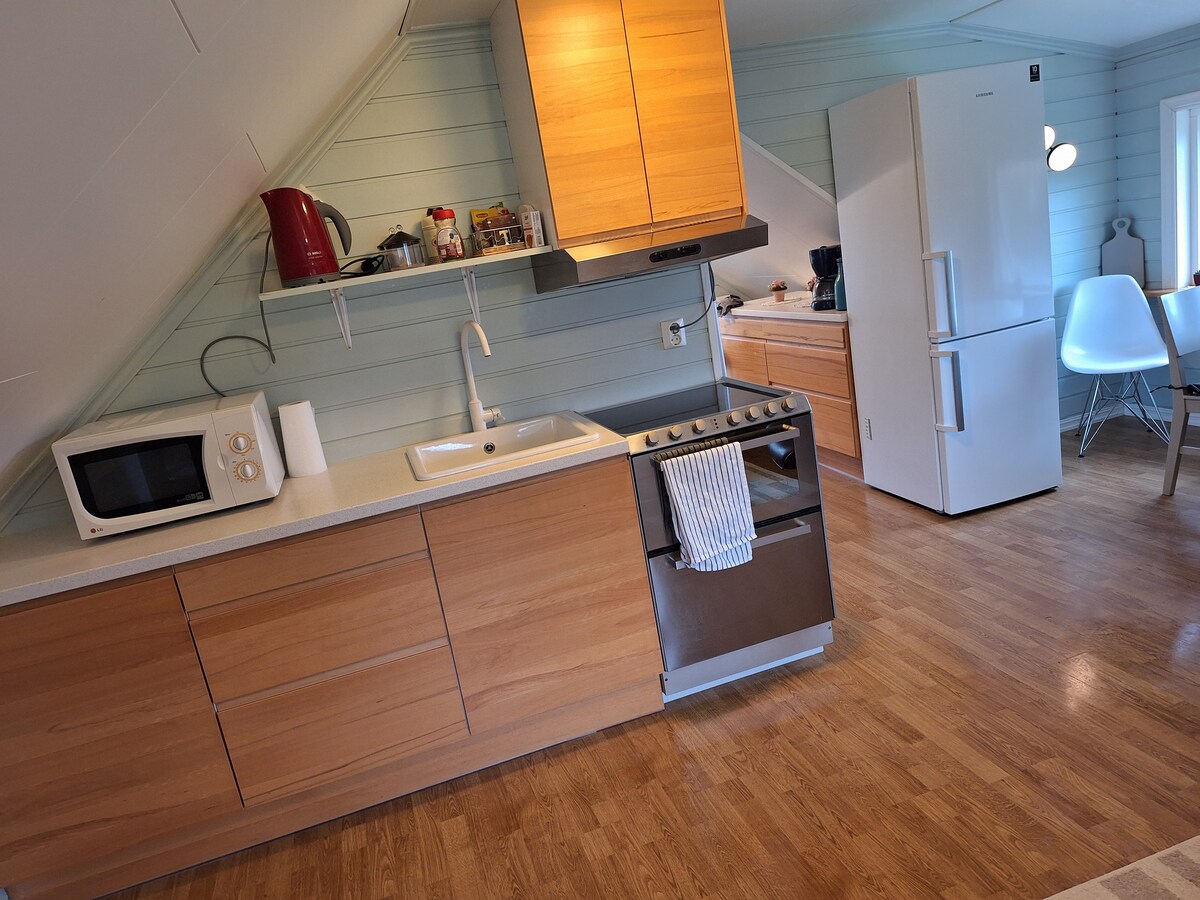 Stan se nalazi u malom dvorištu. Centralno Blizu jezera i mogućnosti kupanja. Pešačke staze Apartman sadrži standardnu kuhinjsku opremu za 2 osobe. Veliki frižider sa zamrzivačem. Mašina za pranje veša TV Altibox Wifi Toplotna pumpa Spavaća soba ima 1 krevet + dodatni dušek