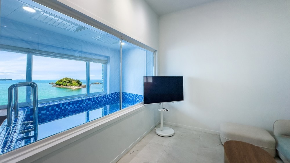 Čista i luksuzna unutrašnja soba s pogledom na okean