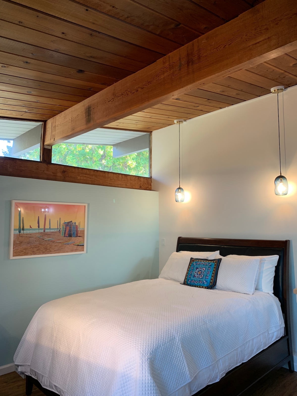 Lijepo renovirana dizajnerska privatna studio jedinica. Internet velike brzine 1200 Mbps i 4K Roku TV Odvojeni spoljni ulaz za kod ključa. Odvojena kontrola grijanja i klima-uređaja, ručni daljinski upravljač. Radni prostor. Besprekorno povezano kupatilo. Drveni plafon katedrale. Izuzetno udoban bračni krevet, jorgan, tapacirano uzglavlje. Zonirana rasvjeta koja se može prigušiti. Mala čajna kuhinja sa pultom, mikrotalasnom rernom, frižiderom, sudoperom, priborom za jelo. Ljubazni domaćini koji brzo odgovaraju.