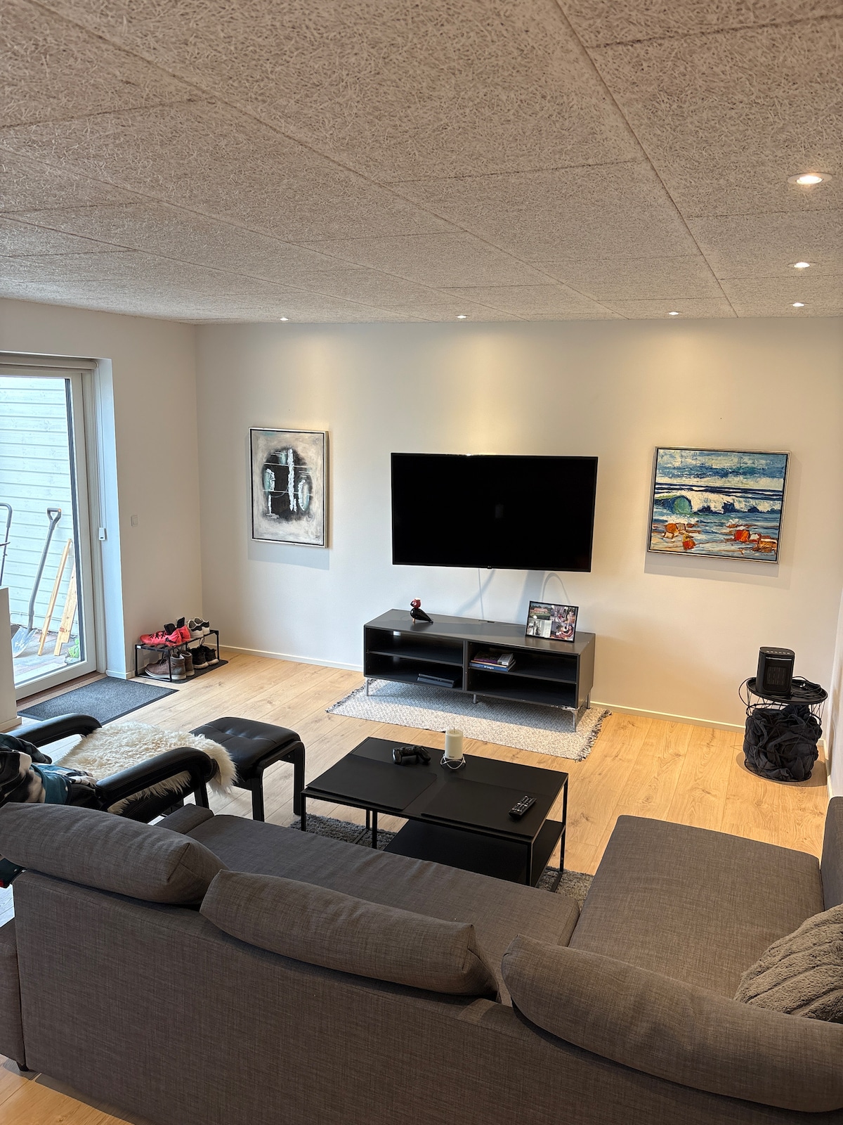 Moderna zvučno izolovana kuća u nizu od 110m ² prostire se na 3 sprata u centru Silkeborga. Zvučno izolovani panoramski prozori i podno grijanje u svakoj prostoriji. Genvex ventilacija. Parking (uz naplatu), uključujući punjenje, odmah ispred kuće. Balkon i terasa. Izlaz u unutrašnje dvorište sa namještajem za opuštanje. Direktan pristup pješačkoj ulici s kafićima/restoranima. 200 metara do jezera i prirode. 1 km do staza za planinski biciklizam. 2 km do parka za penjanje i golfa. Lak pristup Arhusu i Heringu autoputem. Samo 1 sat od Legolanda i Lalandije. Bicikli se mogu iznajmiti.