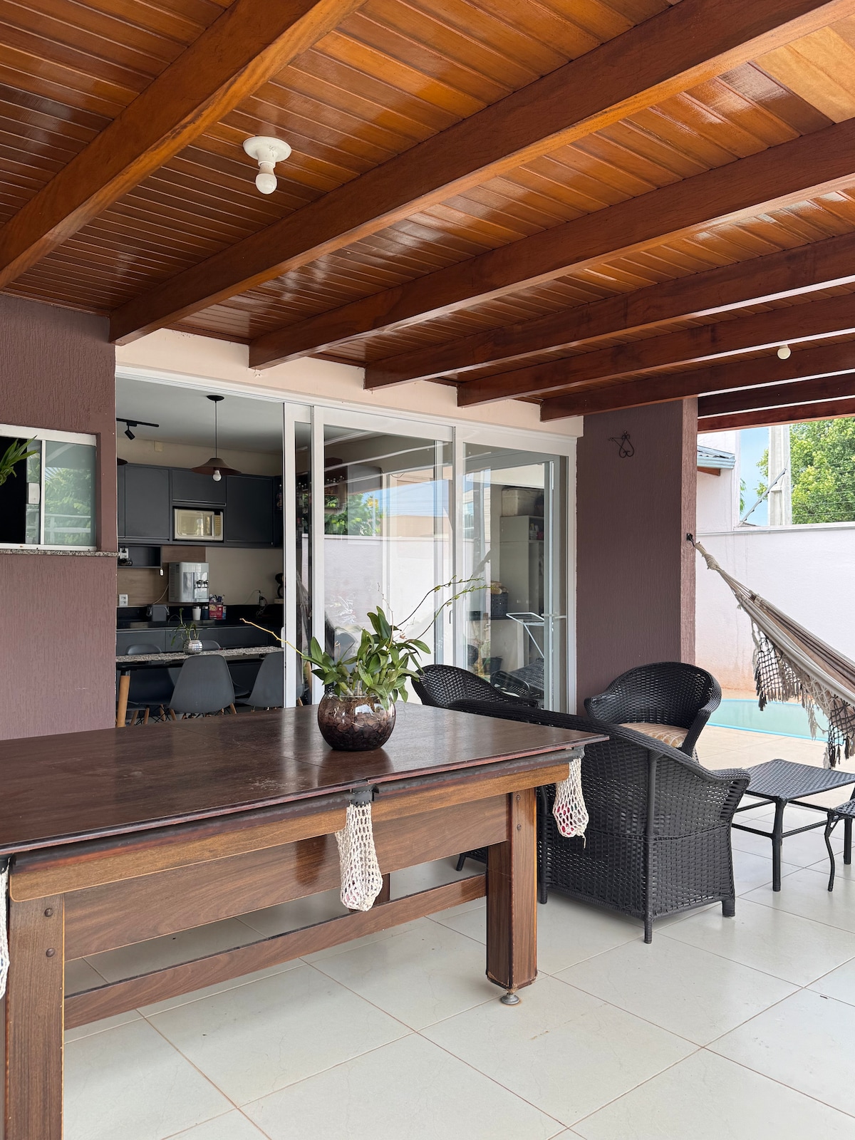 Our house is perfect for your family! Besides being close to everything, it has 3 bedrooms, a garage for 2 cars, a heated pool, and accepts small pets. You can relax while the children have fun in the "warm water" of the pool. Located in a quiet and safe neighborhood, the house is one block from Santo Antônio Hospital and the CTR, just 5 minutes from the city center. Close to pet shops, supermarkets, snack bars, and much more. One of the bedrooms is on the second floor and is a hit with the kids