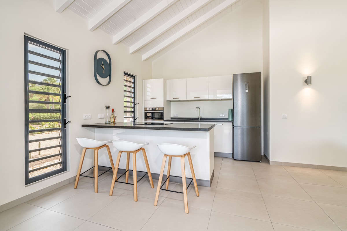 Opustite se u našoj modernoj vili sa karipskim štihom i zadivljujućim pogledom na okean! Vila se nalazi u ograđenoj zajednici odmarališta Koral Estate i u blizini najljepših plaža Kurakaoa. Od vile možete prošetati do kluba na plaži Coral Estate. Velika palapa na terasi bazena je vrhunac kuće! Dok uživate u povetarcu i hladovini, ovo je najbolje mesto da se opustite sa prijateljima ili porodicom i posmatrate najlepše zalaske sunca.
