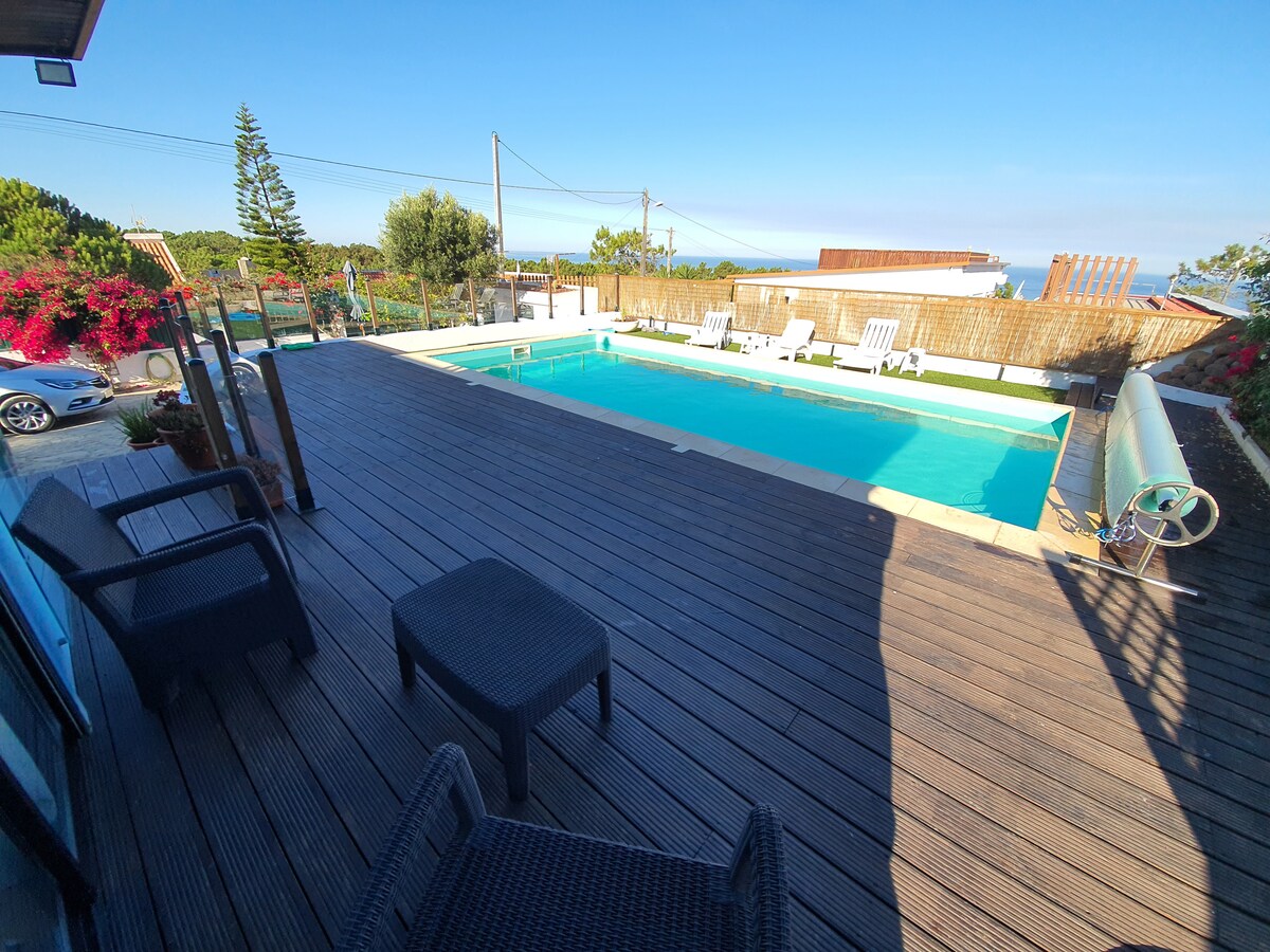 'Maresia' - Možete da osetite miris, čujete, vidite, osetite i osetite more u ovom lepo kreiranom domu sa pogledom na okean. Prelijepa plava drvena planinska kuća, skandinavskog stila, udobno namještena, sa balkonom, terasom, roštiljem i bazenom unutar zidane bašte. Pogled na more i zalazak sunca. Zapanjujuća lokacija u blizini litice, u veoma mirnom, slikovitom području. Šetnje uz obalu, divlje životinje, borove šume. Pristup čistim pješčanim plažama u Sao Juliao, raju za surfere. Obližnje lokalne prodavnice i restorani.