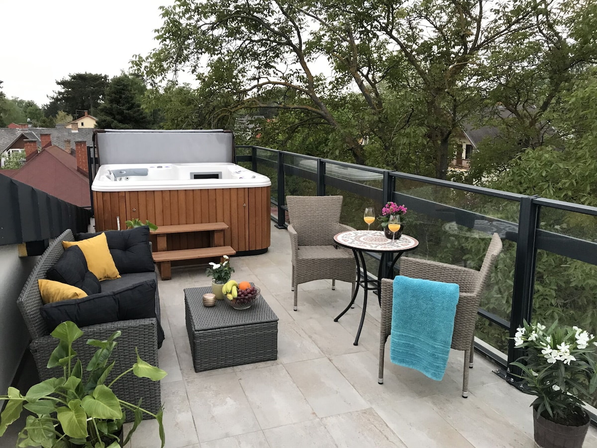 Novoizgrađeni luksuzni stan na najposjećenijoj lokaciji u Siófok-u u okolini šetnice Petőfi (200 metara od trga) sa modernim sadržajima. Jedinstveni zajednički velnes na krovu (saune, bazen za plivanje, đakuzi, dečiji bazen,vanjski bazen) nalazi se u smeštaju i čeka one koji žele da se opuste tokom cele godine. Stan ima zasebnu spavaću sobu, kuhinju dnevnu sobu, hodnik,kupatilo i terasu sa pogledom na baštu. Baštenski nameštaj na terasi. Wi-Fi, Netflix je uključen.