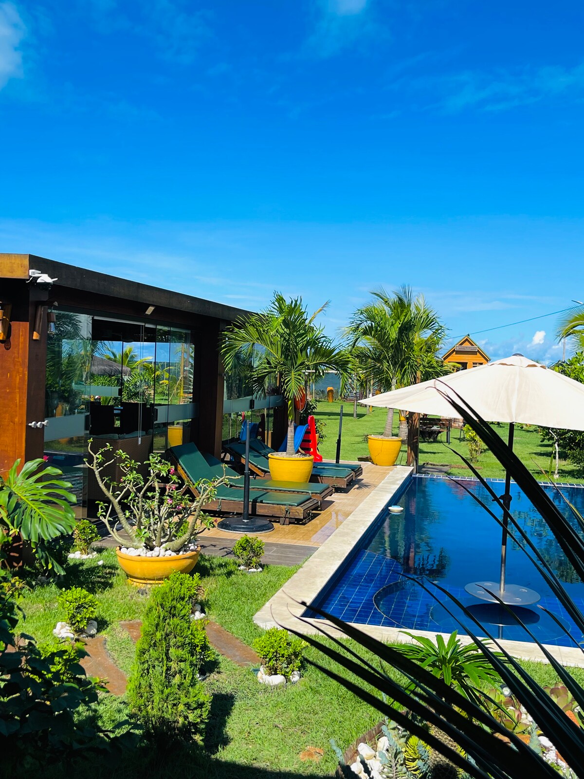 Casa Solar da Barra is located in the town of Barra de Sirinhaém, a village between Porto de Galinhas and the Carneiros beach in Tamandaré. Nalazi se nekoliko metara od plaže, sa koje se vidi popularno ostrvo Santo Aleixo. Vrlo veliki, dobro opremljeni, udobni i klimatizovani smještaji za do 18 osoba, savršeni za grupe prijatelja i porodice. Nudimo laserske itinerere, gastronomiju i iznajmljivanje glisera. Jedna je od najljepših destinacija na obali Pernambuka.