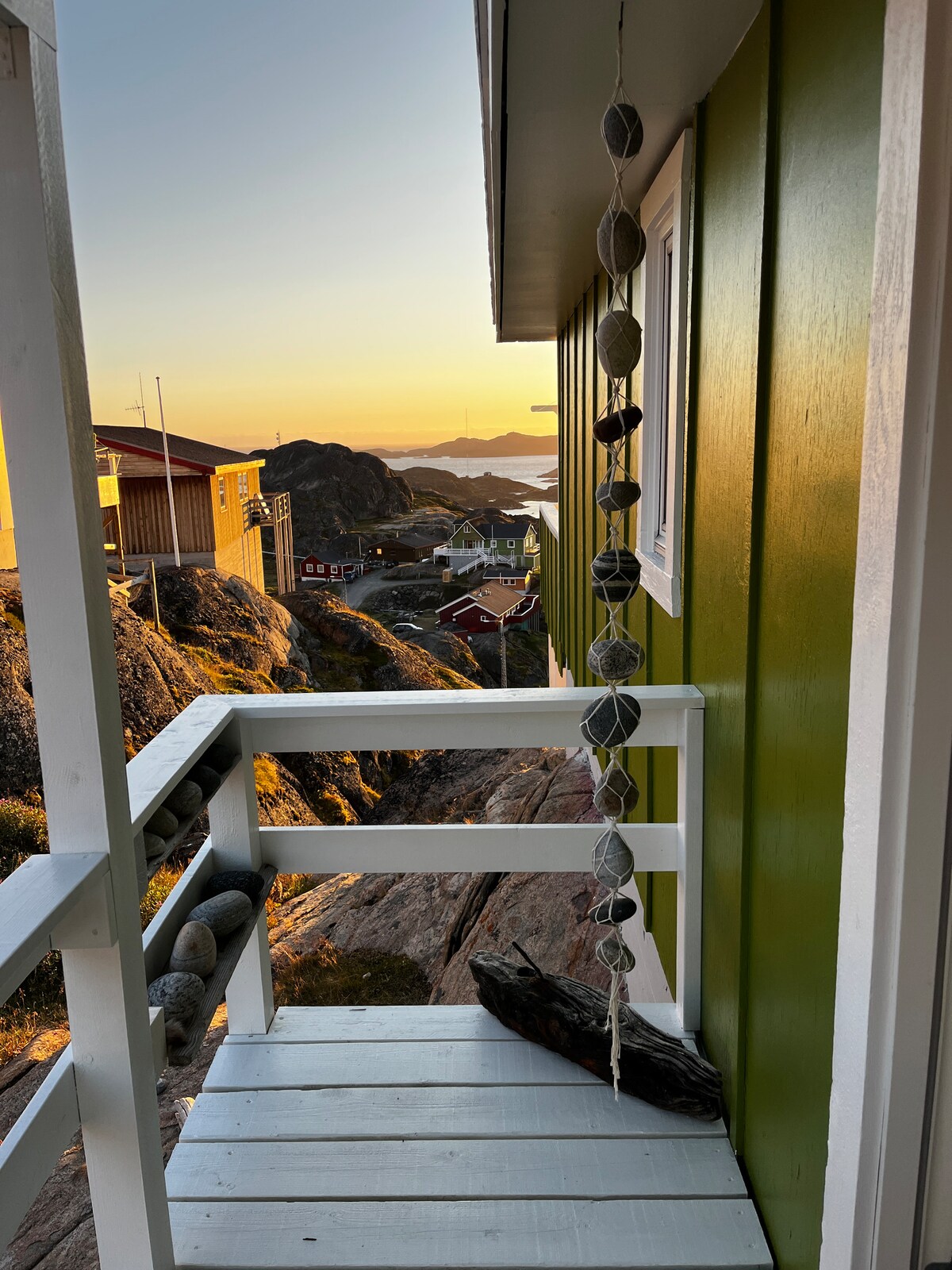 Prostrana kuća u srcu Sisimiuta sa prelijepim pogledom na jug. Kuća ima 4 spavaće sobe (6-7 kreveta), veliki dnevni boravak sa sofom, otvorenu kuhinju, 2 toaleta, 1 kupatilo i veliku terasu. Postoji internet, TV, mašina za veš, mašina za sušenje veša i šporet na drva. Savršeno za porodice, grupe i za duže boravke – blizu prirode, luke i grada.