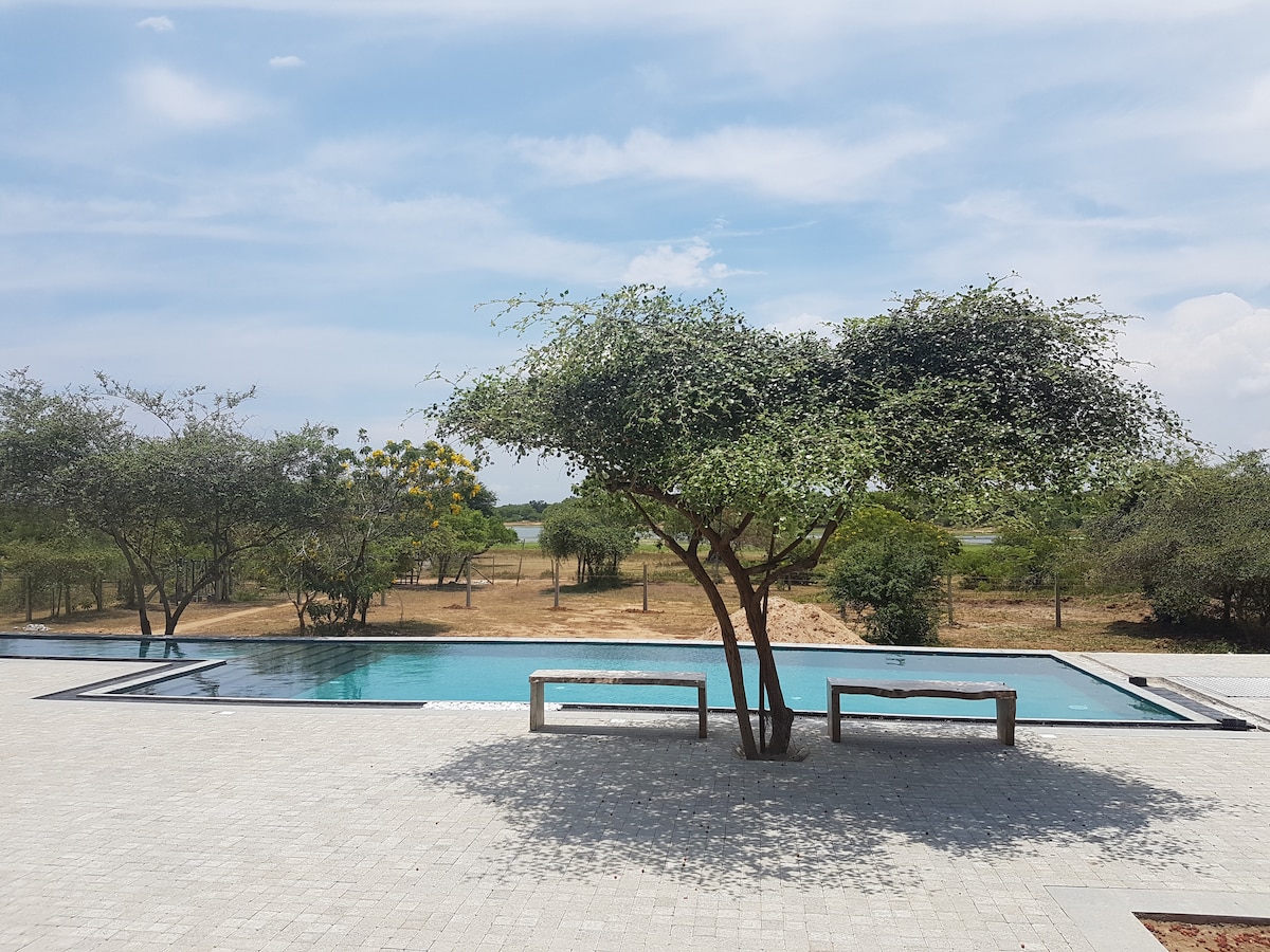 Potpuno opremljena 2-sobna vila sa 2 spavaće sobe i privatnim bazenom za 8 osoba graniči sa nacionalnim parkom Jala sa jedne strane i graniči sa prelepim jezerom gde dolaze sve ptice migranti i slonovi i sve vrste divljih životinja