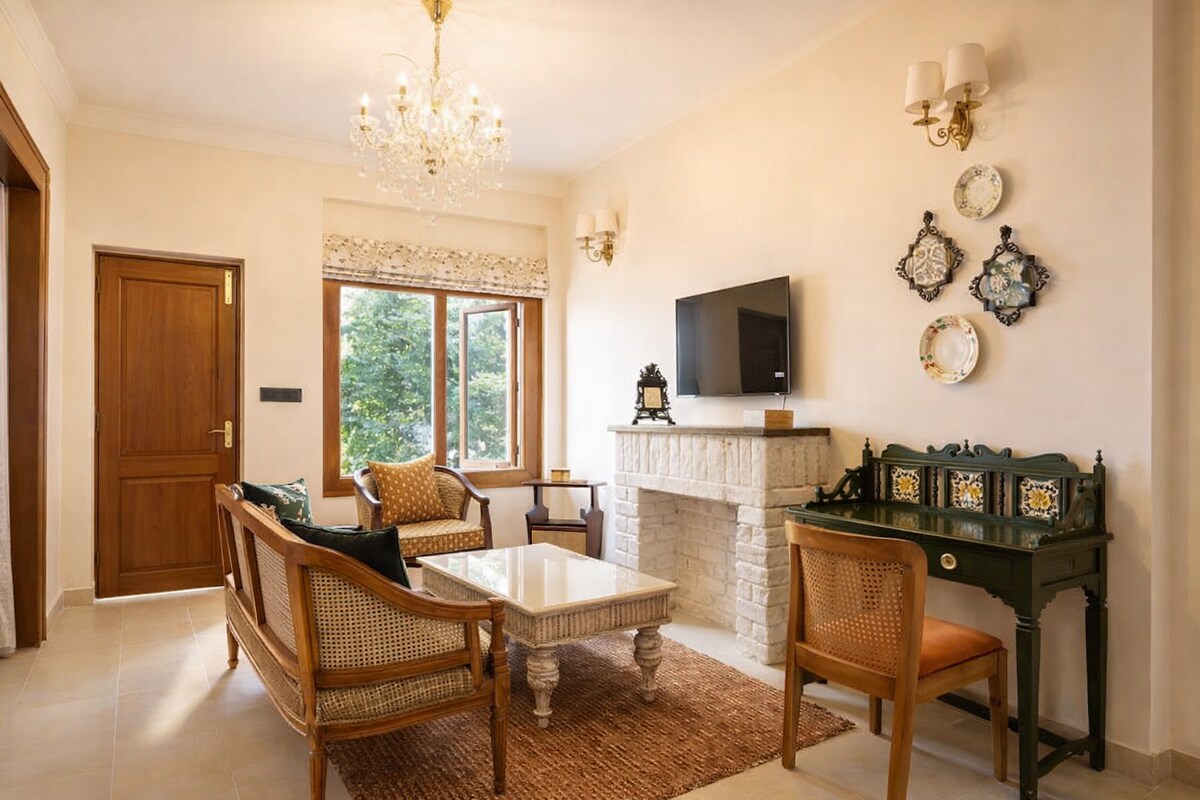 Živite slavnim životom u dolini Dehradun! Ova legendarna 4BR vila, jedan od prvih smještaja u Uttarakhandu, ugostila je bolivudske zvijezde i muzička snimanja. Rasprostranjen na više od 1000 kvadratnih metara sa travnjacima, 4 terase i pogledom na Musori, spaja rustikalni šarm sa modernom udobnošću. Udobni saloni, kamin u engleskom stilu, nostalgična biblioteka, veranda čai i vrapci, kuvarski obroci i Wi-Fi od 150 Mbps čine ga odmor iz snova. Sobe spremne za Netflix, porodična atmosfera i prostor za kućne ljubimce – savršeni za praznike, okupljanja i radove.